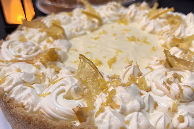 Para decorar usé crema chantilly, un poco de ralladura de limón y unos gajos de limón deshidratados en la airfryer, que le dieron un toque hermoso.